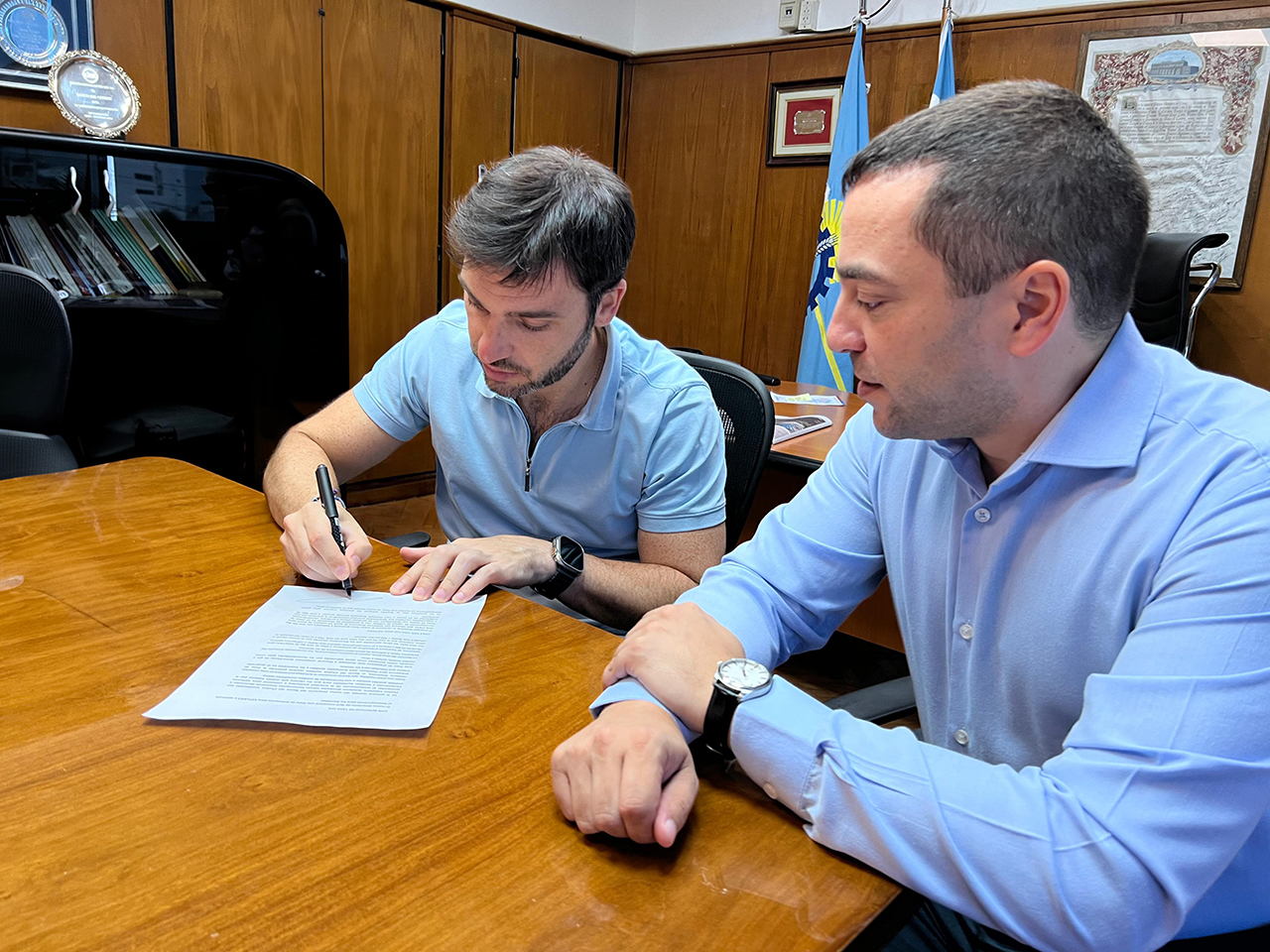 El Gobernador de la provincia, Ignacio “Nacho” Torres, se reunió este miércoles con el presidente del Banco del Chubut, Paulino Caballero, Provincia pagó ya el Bono Programa de Obra Pública .