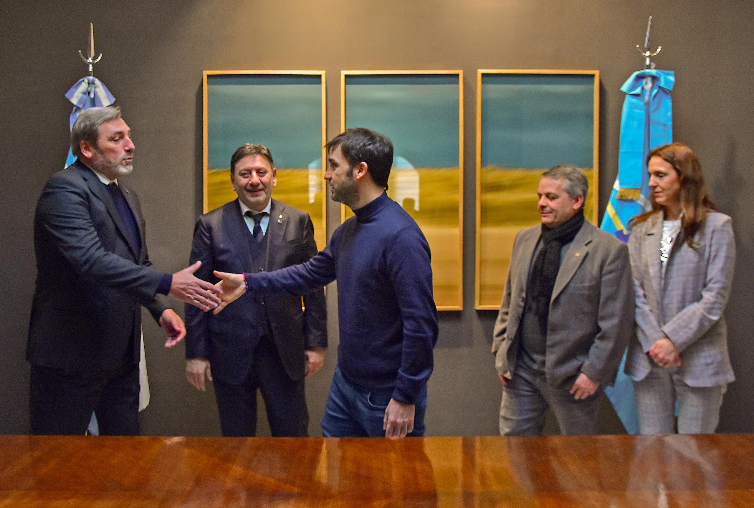 Además, participaron también del encuentro con el mandatario provincial el tesorero de dicha entidad, Adrián Flores; el vocal titular, Aníbal Brunet; y la delegada de la provincia de Chubut, María Bottini.