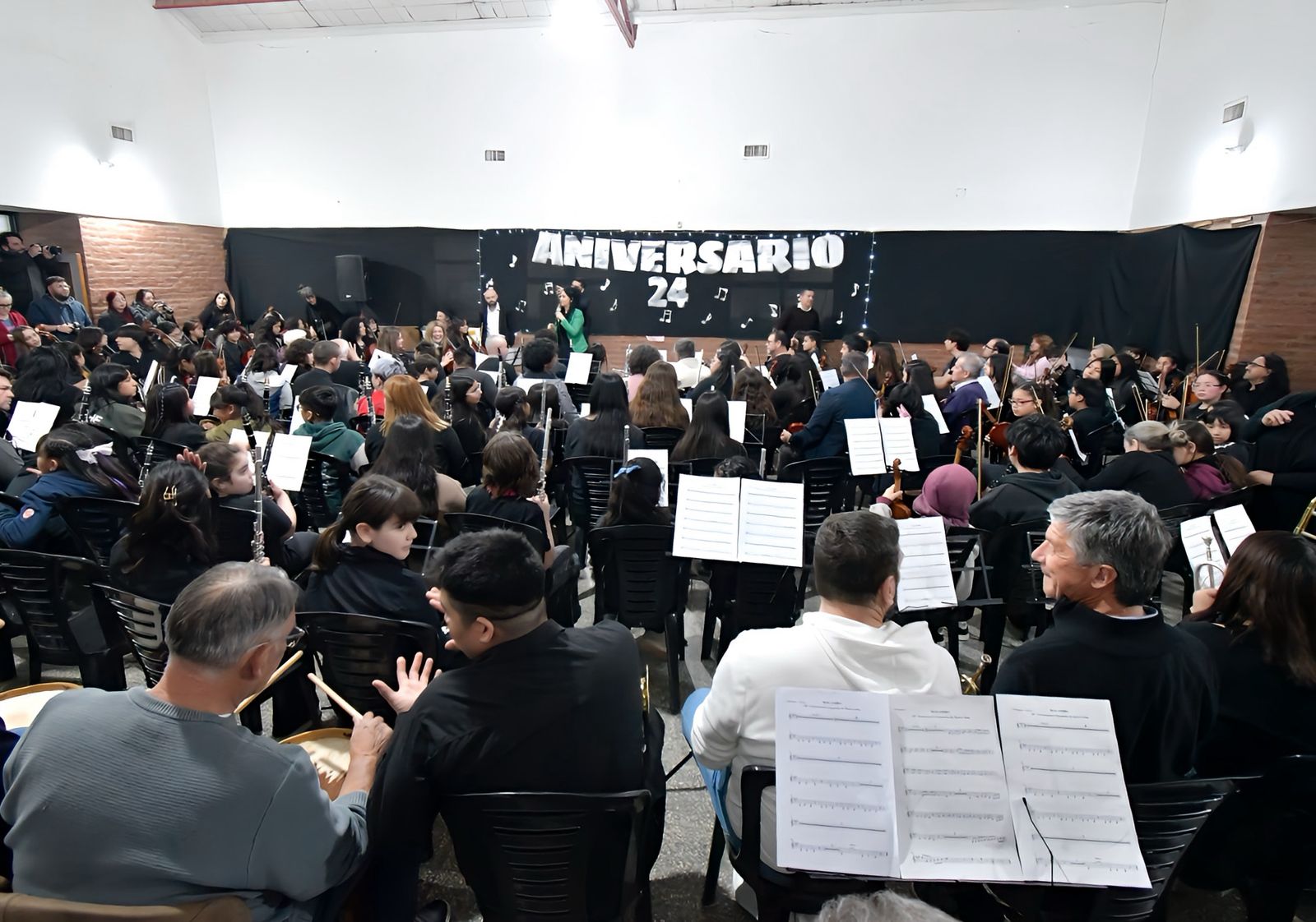La Orquesta del barrio INTA celebró sus 24 años con un encuentro especial en la Escuela Nº 207, que contó con la participación del intendente Gerardo Merino, del vicegobernador Gustavo Menna, funcionarios municipales, y familias que destacaron el aporte cultural y social de esta formación comunitaria.